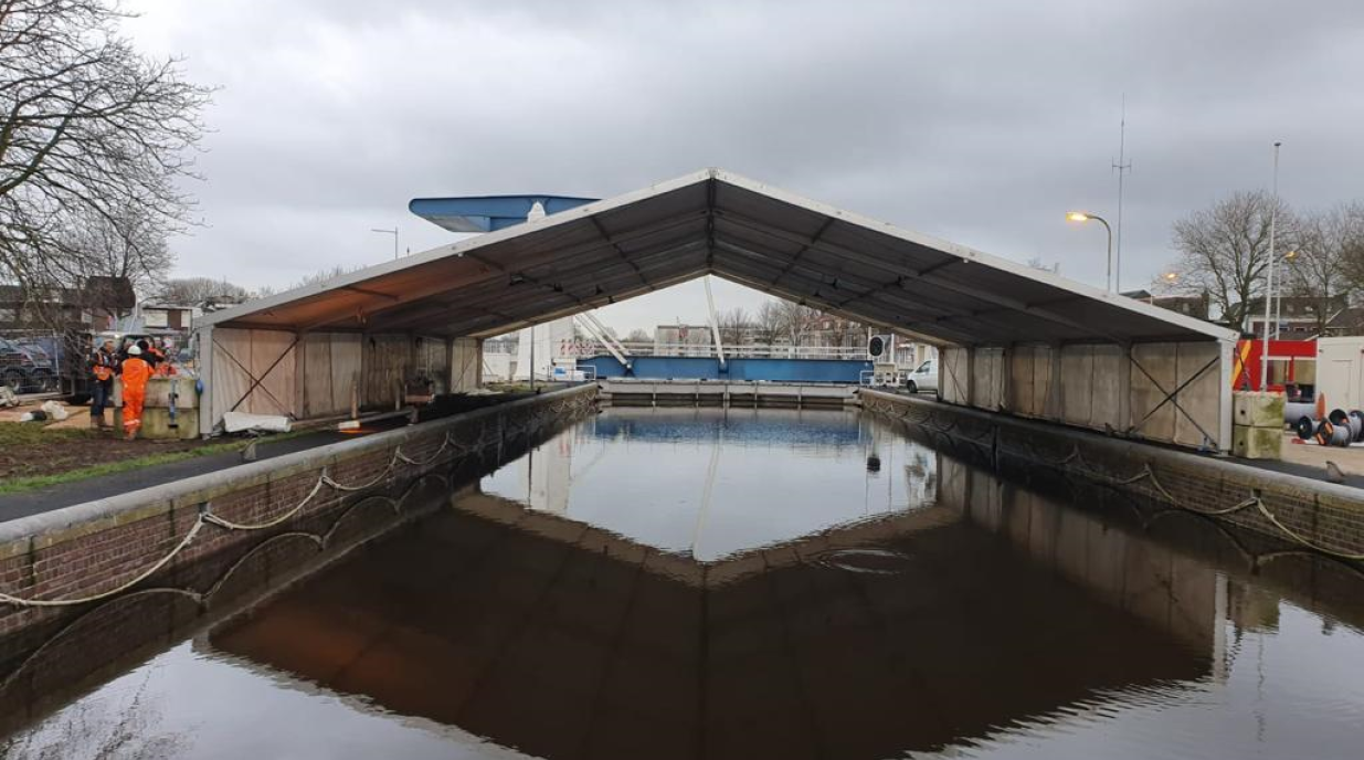 In Purmerend hebben we een voor een opdrachtgever een tent gebouwd over de sluis.